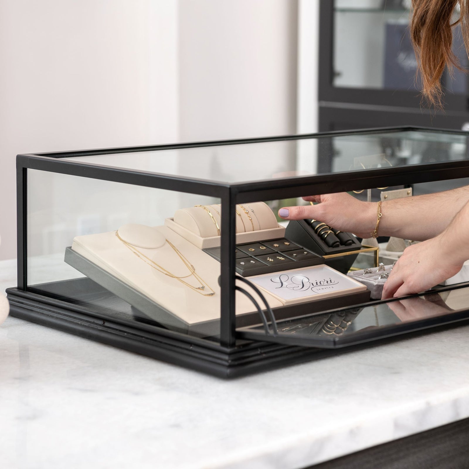 A GIA graduate gemologist, Lauren's work experience spans the sales floor of Tiffany & Co., to the back offices of a diamond auction house, to the fast-paced deal-making environment of Jewelers' Row. Although she loved the experiences of working for other people, she felt that women should be more empowered and seen within the jewelry industry. Thus, L. Priori Jewelry was born.