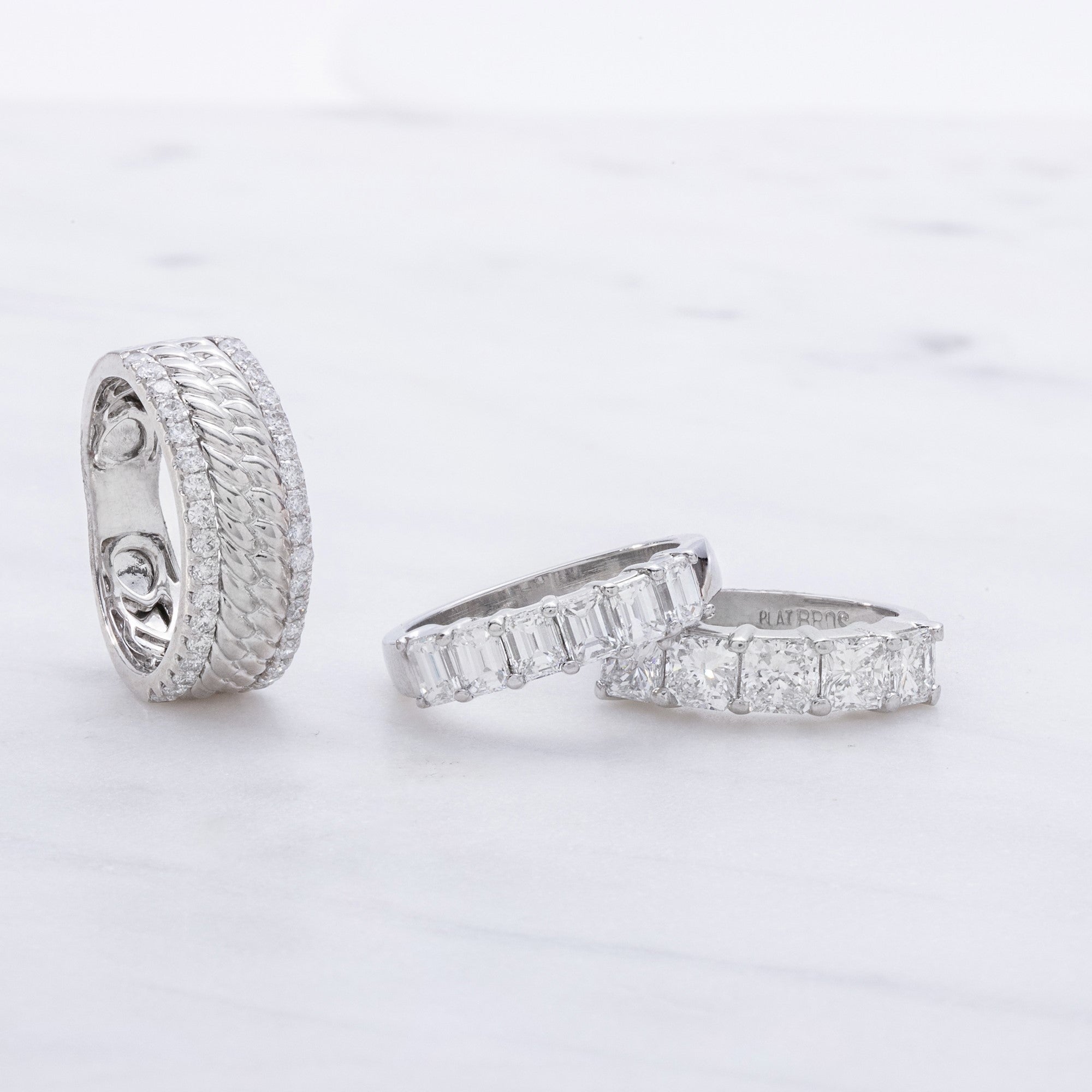 Sitting down with one of our consultants will be a huge help to you. They will help you explore all your options - contour rings, spacer rings, or custom designing your band - to help you build a wedding stack that suits you.